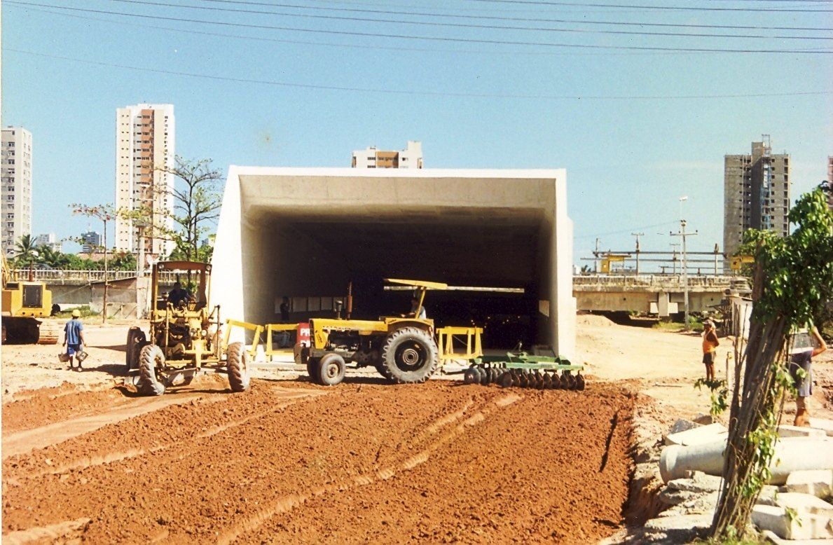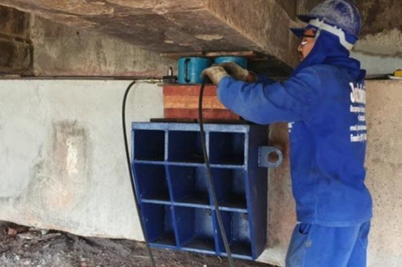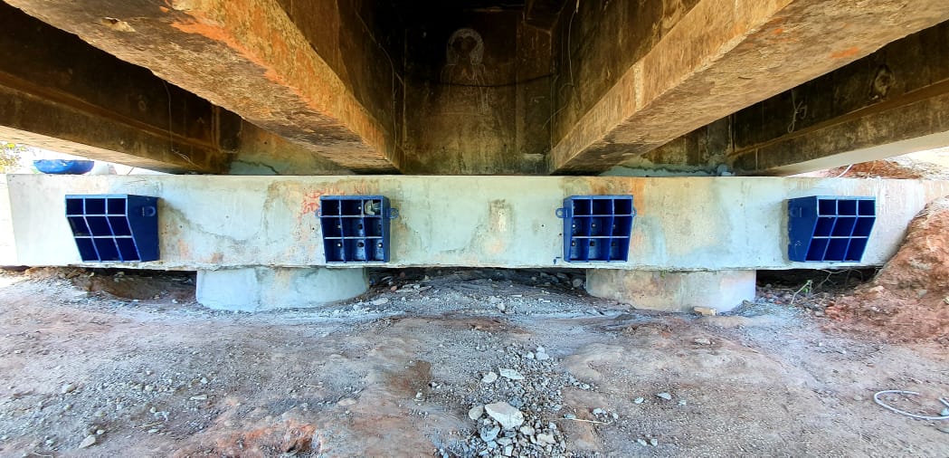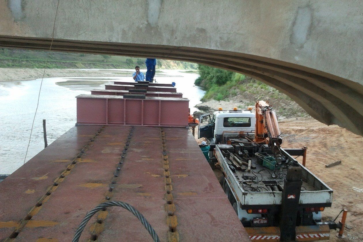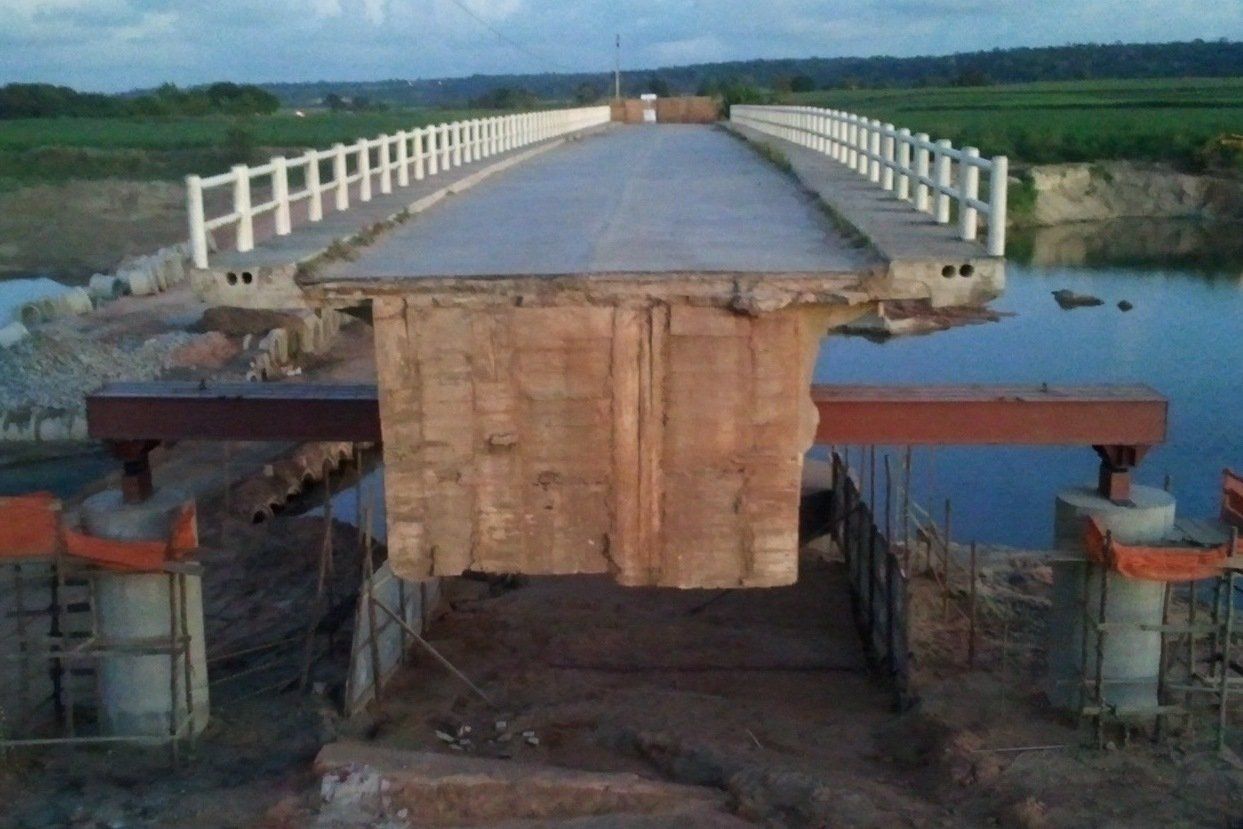 Ponte da Batalha, Rodovia PB-04, Santa Rita - PB. Projeto do escoramento emergencial com estrutura metálica e fundações em tubulões a arcomprimido devido ao colapso do encontro em função das cheias do Rio Paraíba (Jatobeton Engenharia / DER-PB)