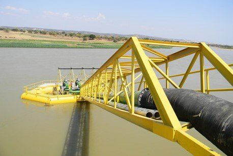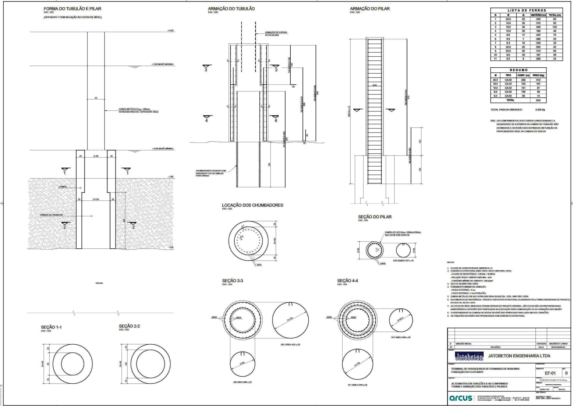 Estrutura para sistema de captação de água do SAA de Irecê no Rio São Francisco-BA. Projeto de fundações em tubulões a ar comprimido e superestrutura em concreto armado e vigas de aço (GPO SOLVI ENGENHARIA / EMBASA)