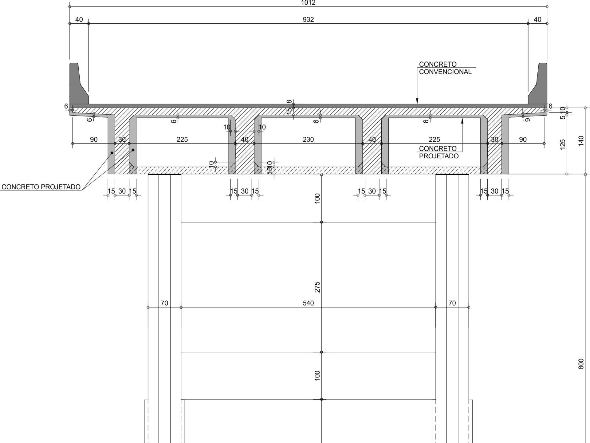 Projeto de reforço estrutural das vigas principais da passarela de pedestres sobre a Rodovia BR-232 no Distrito Industrial do Curado, Recife, Peranmbuco. (Jatobeton Engenharia / DER-PE)