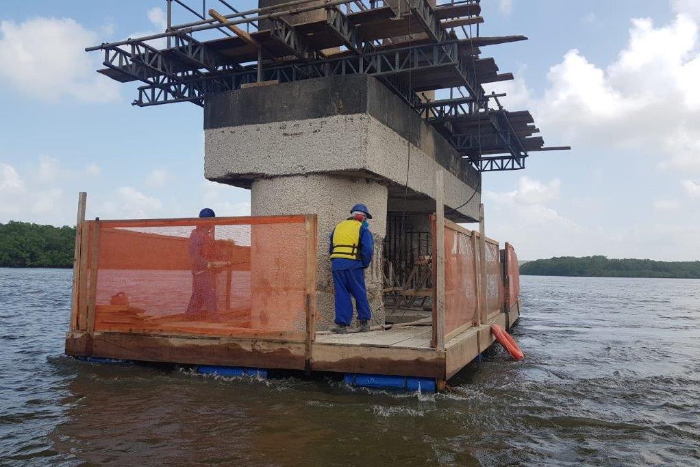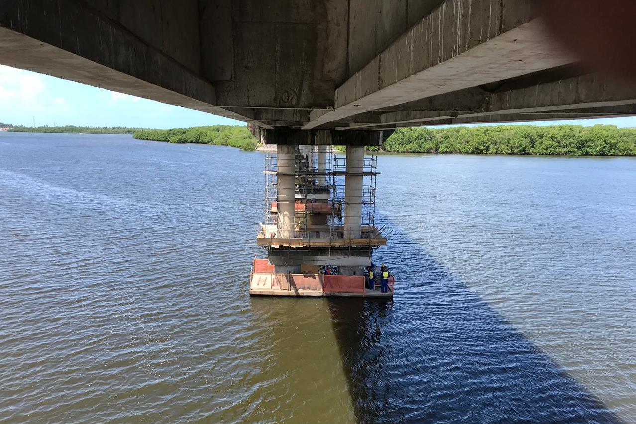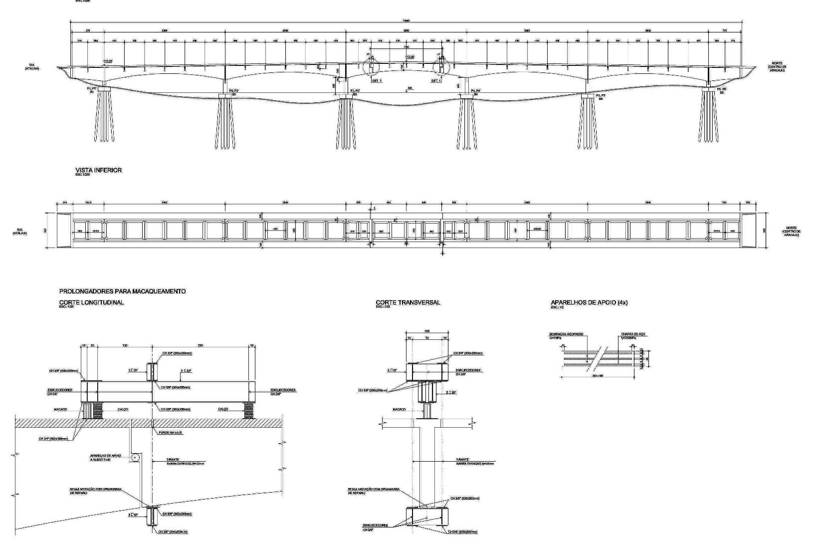 Ponte sobre o Rio Poxim, Aracaju-SE. Projeto do sistema para macaqueamento para substituição dos aparelhos de apoio e recuperação estrutural dos dentes gerber (Jatobeton Engenharia / DER-SE)