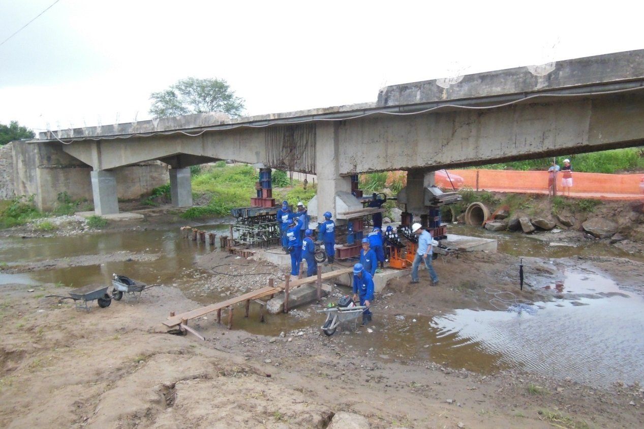 Ponte sobre o Rio Ingá, Rodovia PB-66, Ingá-PB. Projeto sistema de macaqueamento, projeto de reforço das fundações em estacas raiz e projeto de reforço da estrutura com adequação para o trem tipo Classe 450 kN (Projeto Engenharia / DER-PB)